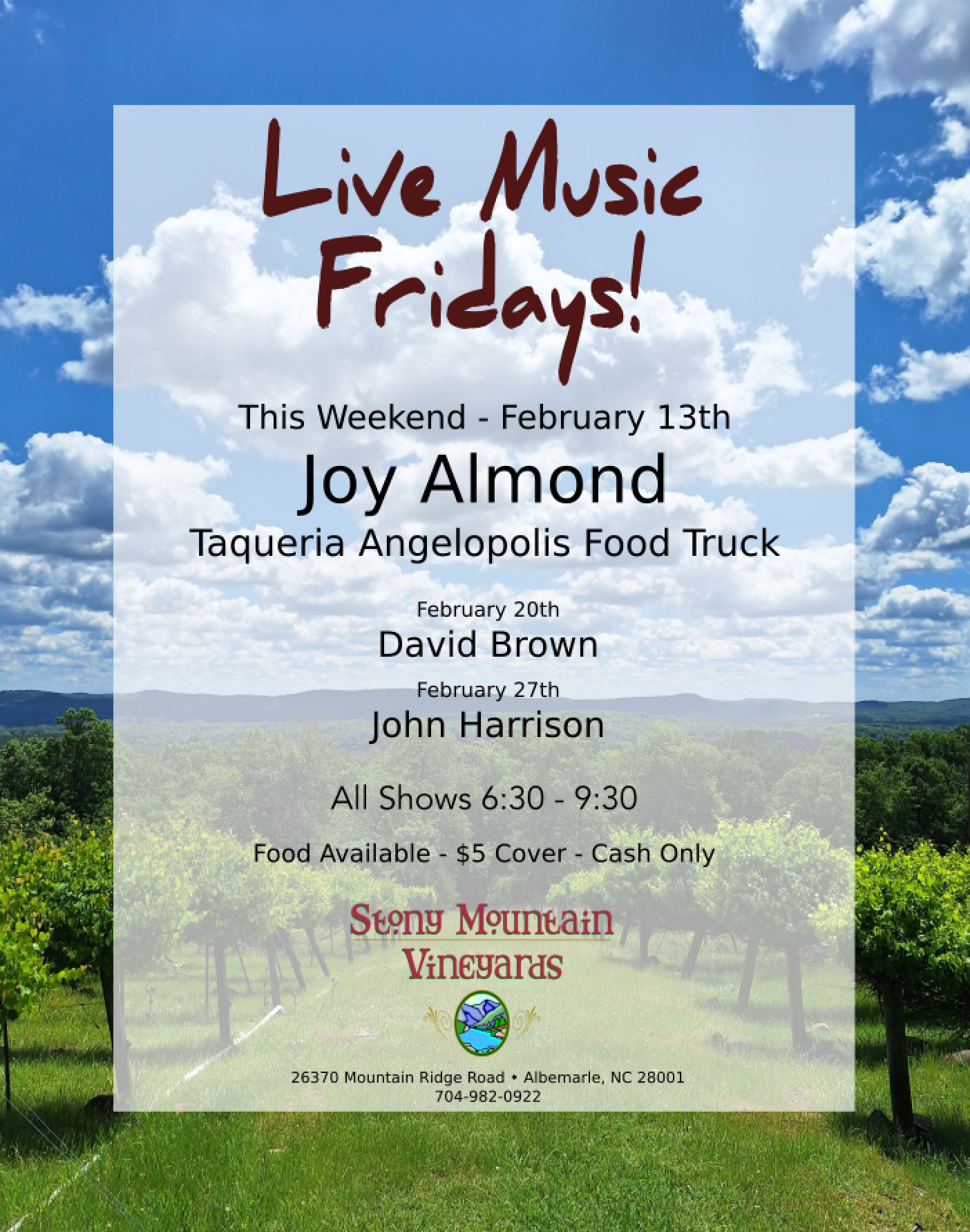 Wine Down Friday w/ Tracy Bates & The Circuit Riders and the Taqueria Angelopolis Food Truck!